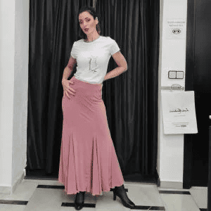 La falda de baile Césped es una prenda versátil, cómoda y muy favorecedora. Está pensada para mujeres que quieren sentirse seguras, cómodas y con estilo mientras disfrutan del arte del flamenco.