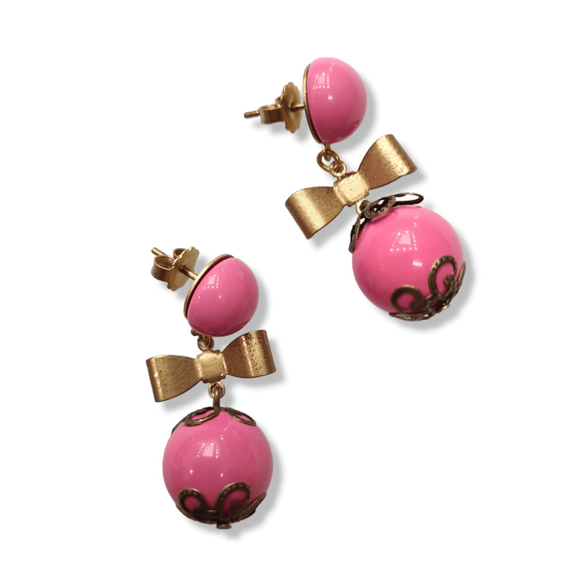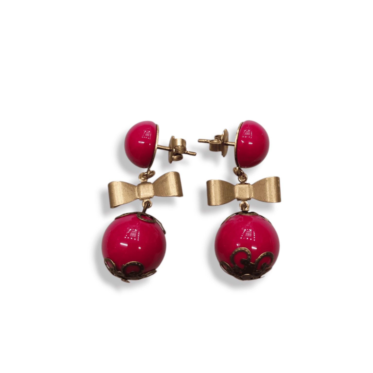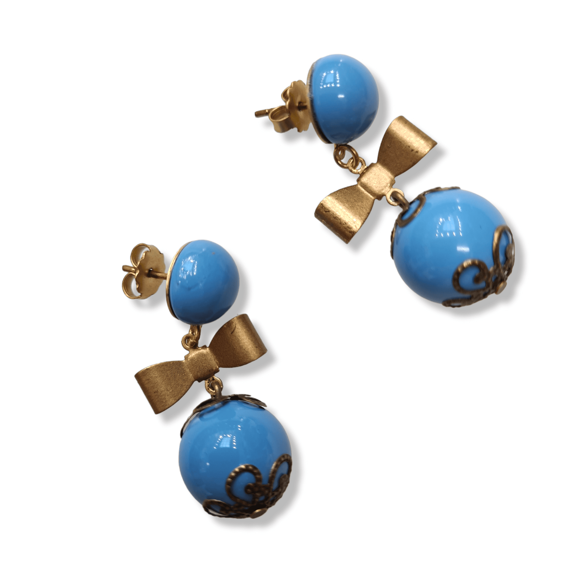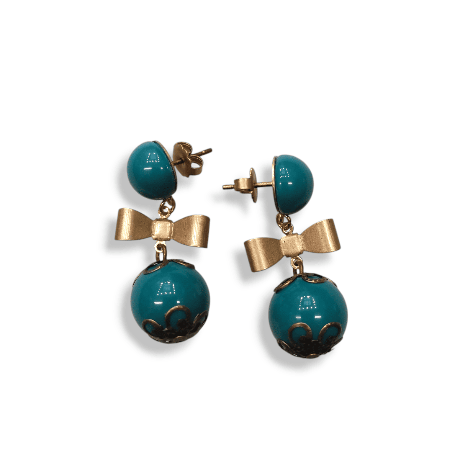 Nuestros pendientes de flamenca para niña están diseñados para aportar un toque de color y encanto a los looks más tiernos. Con un diseño alegre y elegante, estos pendientes combinan dos bolas de color vibrante con un delicado lazo en dorado, ideal para complementar cualquier traje de flamenca infantil.