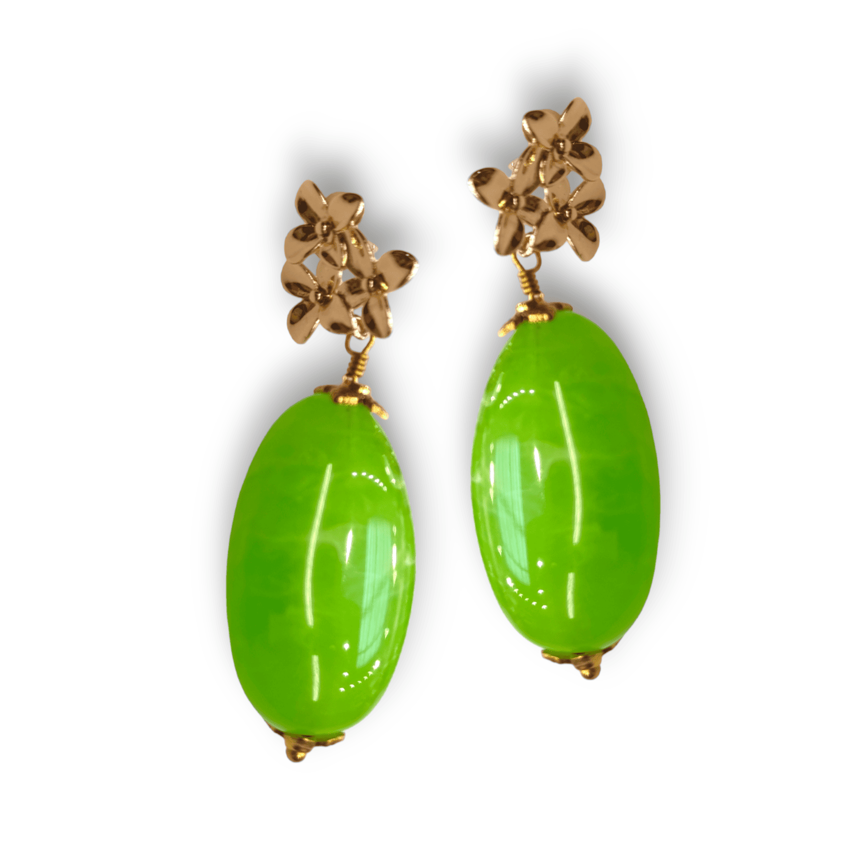 La base en forma de flores le da un aire femenino y romántico, mientras que la piedra tornasolada añade un toque de brillo sofisticado, sin resultar excesivo. El resultado es un pendiente versátil que puedes lucir con trajes de flamenca, vestidos de invitada o looks más formales con un aire único.