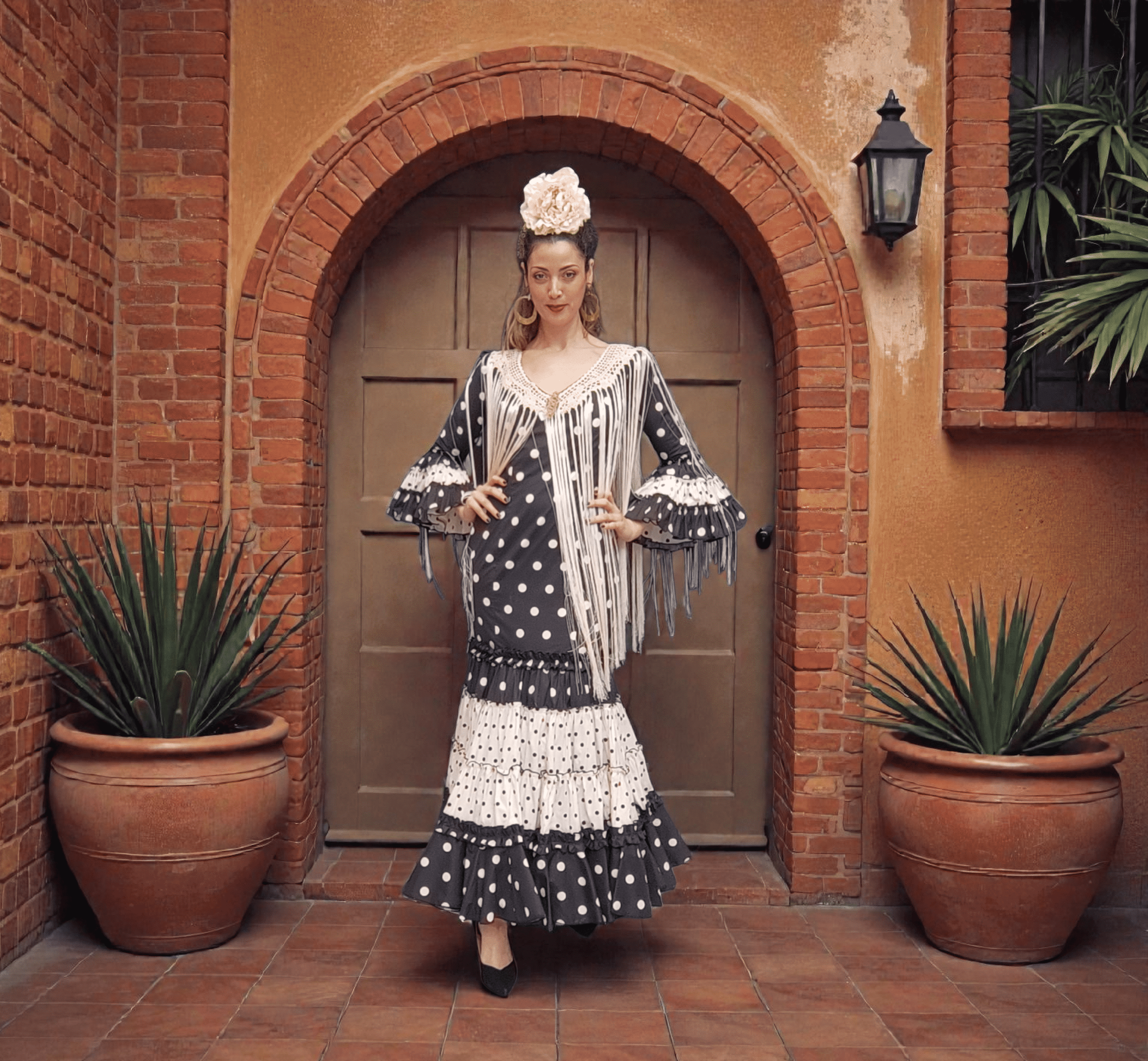 El traje de flamenca Guacimara es elegancia y carácter en perfecta armonía. Confeccionado en popelín, ofrece estructura, comodidad y una caída favorecedora que realza la silueta con naturalidad. La combinación en negro y beige aporta sofisticación y un estilo atemporal ideal para cualquier feria o evento especial.
