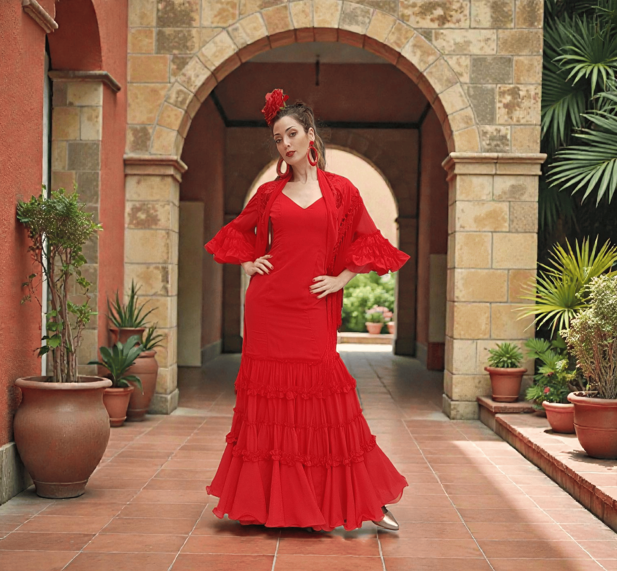 El traje de flamenca rojo Julia es una pieza delicada y sofisticada, diseñada para mujeres que quieren proyectar elegancia, seguridad y feminidad en cada paso. Confeccionado en gasa, este vestido destaca por su ligereza, caída fluida y movimiento natural, convirtiéndose en una opción ideal para ferias y eventos especiales.