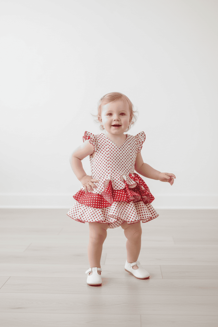 El Vestido de flamenca de bebé rojo Unicornio es un diseño dulce y lleno de encanto, pensado para que las más pequeñas luzcan auténtico estilo flamenco con total comodidad. Este traje de flamenca para bebé es corto, ideal para permitir libertad de movimiento y frescura en los días de feria o celebración.