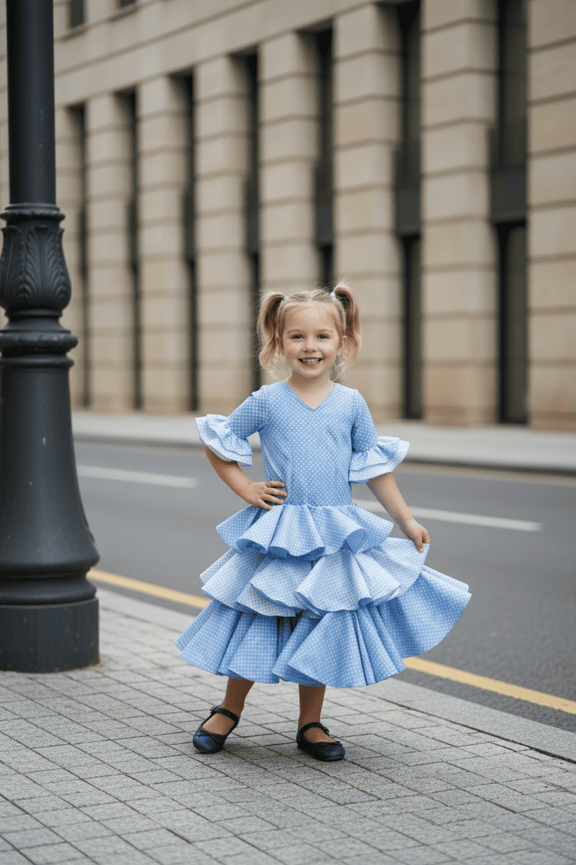 Para un conjunto completo, considera añadir complementos como una peina a juego y unos zapatos de flamenca. Estos accesorios realzarán el look y permitirán que tu pequeña luzca un estilo flamenco completo y encantador. Combínalo con estos pendientes