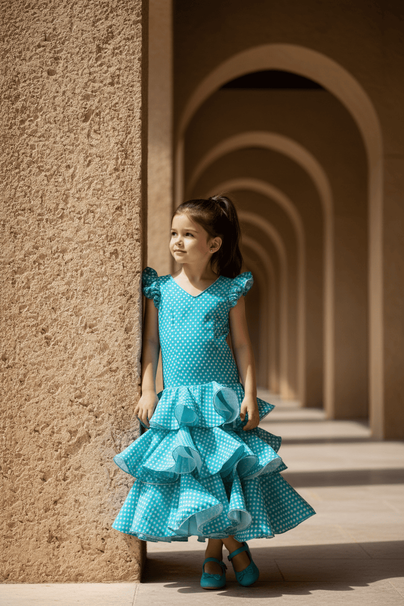 Ideal para ferias, romerías, fiestas escolares o celebraciones especiales, este vestido convierte a cualquier niña en una auténtica flamenca, combinando encanto infantil, tradición andaluza y un estilo atemporal que nunca pasa de moda. 💃✨