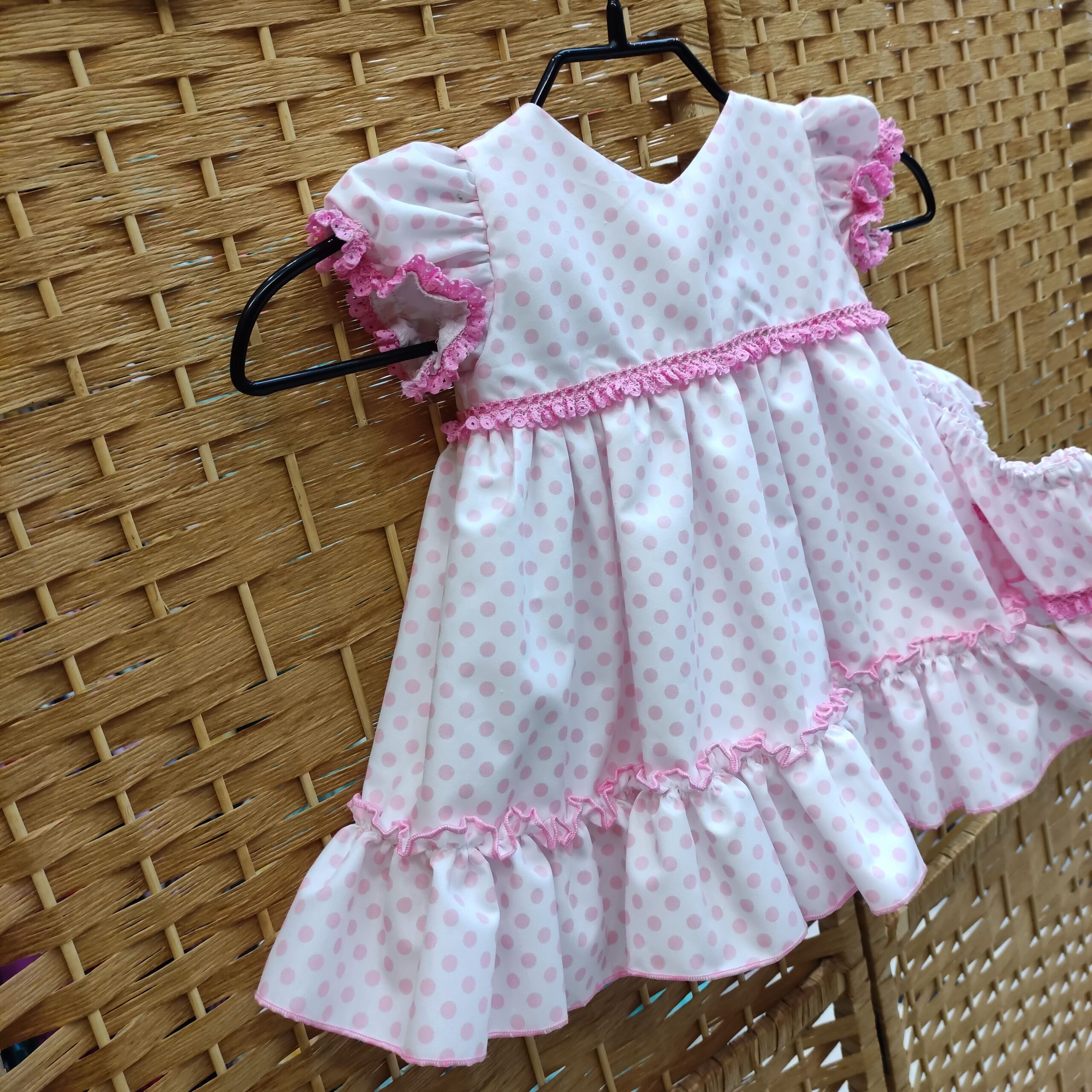 El Vestido rosa Alondra es una pieza dulce y atemporal pensada para las más pequeñas. Confeccionado en batista de lunares, un tejido ligero, suave y transpirable, garantiza comodidad y frescura para el bebé en cualquier ocasión especial.